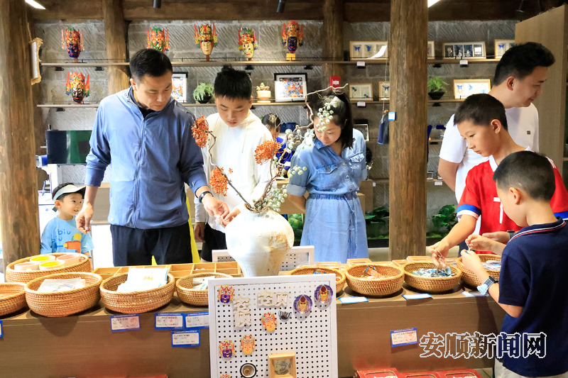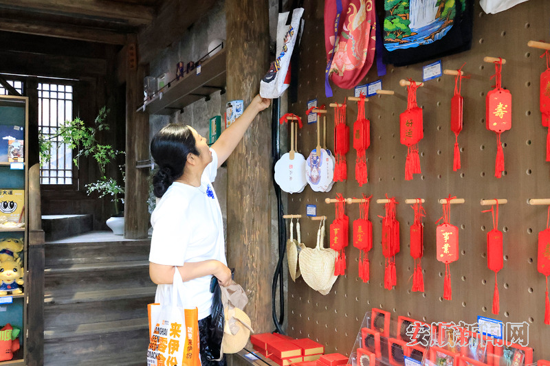 “带安顺回家”古城文创店是安旅集团文创公司打造的10多家文创集合店之一。近年来,该公司始终怀揣着对本土文化的敬畏与热爱,致力于深挖安顺的文化底蕴,让沉睡的文化资源在现代创意的唤醒下“活”起来,以全新的面貌呈现在世人面前。