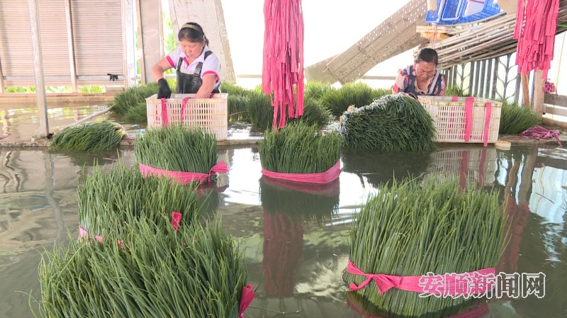 随后记者来到了后寨村的香葱清洗池,只见两名工人正将采收好的香葱一批批放入池中,他们动作娴熟地在水中揉洗香葱,去除根部的泥土和杂质,清洗好的香葱整齐地码放在一旁的筐子里,等待进一步的包装和运输。