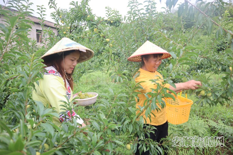八月果飘香,村民采摘忙。西秀区黄腊乡嘉惠村的果园迎来了大丰收,一串串饱满圆润的贵妃李挂满枝头,在阳光的照耀下散发着诱人的光泽,果农们穿梭其中,指尖轻转便将成熟的果实收入篮中。