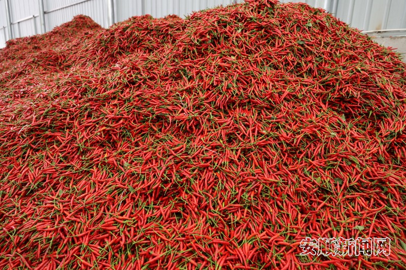 田间辣椒采收正忙,烘干厂内加工正酣。走进安顺秀丽山红农业发展有限公司辣椒烘干厂,村民们陆续将自家的辣椒送来交易,只见红彤彤的辣椒堆满仓库,两台烘干线正马力全开进行烘干工作,现场一片热火朝天的忙碌景象。安顺秀丽山红农业发展有限公司负责人王胜华表示,加工厂今年从8月1日开始收购红椒,目前每天可收购30多吨辣椒,通常是连夜烘干装车发货,将辣椒销往遵义。“随着辣椒不断成熟,预计今年8月20日可进入采收高峰期,到10月底结束采收,届时每天可收购近百吨辣椒,两台机器得昼夜开工才能满足烘干需求。”