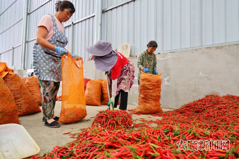作为鸡场乡最大的一家辣椒种植、加工、销售企业,安顺秀丽山红农业发展有限公司以“公司+农户”模式发展辣椒种植,以统一种子、统一农资、统一育苗、统一管护、统一收购的“一条龙”服务带动鸡场、双堡、岩腊等周边百姓种植辣椒10000余亩,其中鸡场乡3000余亩,覆盖近200户农户。“去年,我公司累计收购鲜椒1200吨,烘干辣椒200多吨,产值近2000万元。”王胜华说。