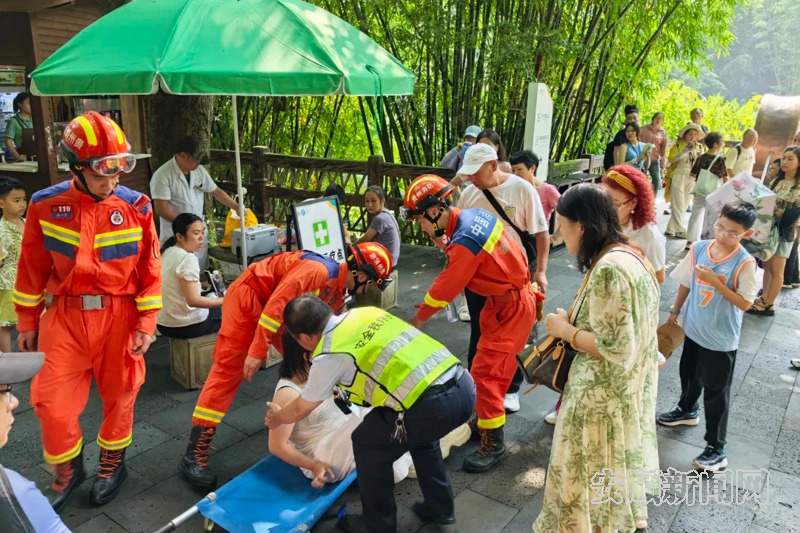 负重攀登,每一步都异常艰难。狭窄的山道上人流如织,老人虚弱的身体不断下滑,陈炬既要调整姿势稳住重心,又要在摩肩接踵中寻找落脚缝隙,浸透救援服的汗水顺着下颌滴落。身旁的战友一边疏导人流,一边轻声安抚老人,四人默契配合,最终将老人安全护送至开阔平台交由医护人员。“当时只想快点把老人家送到安全地方,这点累不算啥。”陈炬笑言,这样的救助在景区早已是家常便饭。