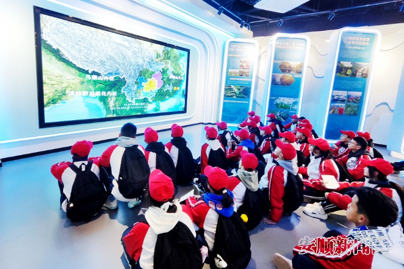 除了趣味十足的亲子游乐项目,黄果树旅游区的研学体验同样备受青睐。在坝陵河桥梁博物馆内,来自湖南的陈先生一家围在研学老师身旁,12岁的女儿正踮着脚,眼神专注地听老师讲解贵州桥梁发展的壮阔历程。从横跨峡谷的坝陵河大桥,到正在建设的花江峡谷大桥,一家人跟着老师驻足观看震撼的工程影像,一步步了解贵州从“地无三里平”到“万桥飞架”的惊人跨越。