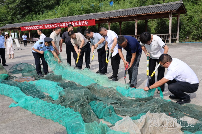 8月27日,“中国渔政亮剑2025”贵州省长江十年禁渔联合执法行动在安顺市普定县定南街道办小兴浪码头举行。此次行动旨在强化交界水域协调执法,形成打击涉渔违法犯罪的强大合力,确保“禁渔令”落到实处。