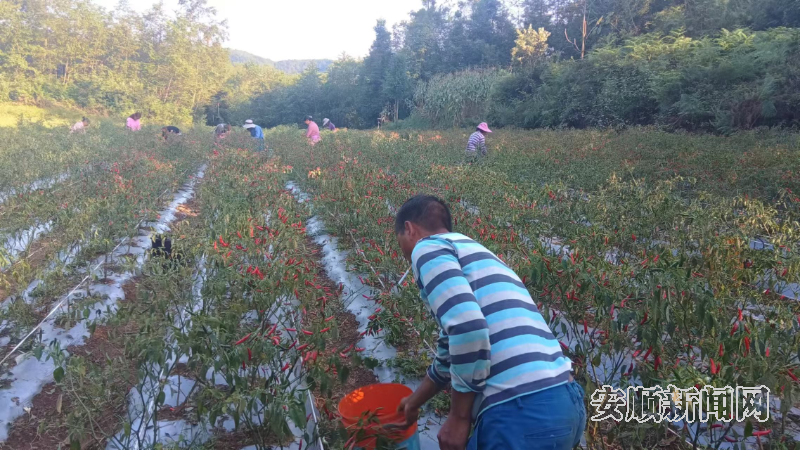 眼下正值辣椒采摘旺季,镇宁革利乡的田野间一派繁忙。鲜红的辣椒缀满枝头,村民们穿梭于绿叶间,熟练地采摘、分拣、装袋。收购车辆已在田间待命,称重、结算、装车流程一气呵成,现场一派热火朝天的丰收景象。