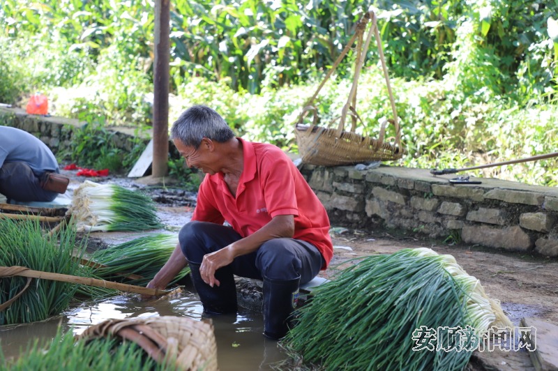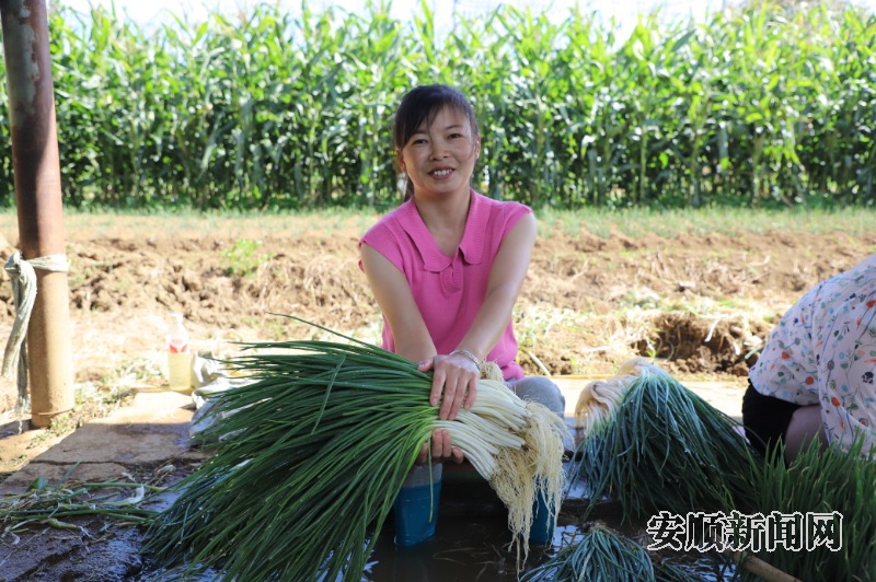 初秋时节,走进镇宁自治县白马湖街道青龙社区,农户们或清洗香葱,或采摘茄子,田间地头一派繁忙景象。