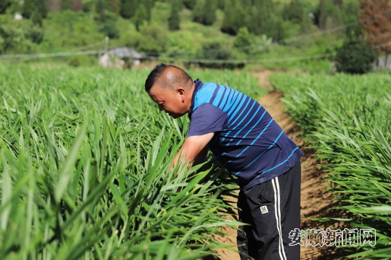 姜田里,村民郑顺华正在检查生姜生长情况。郑顺华是青龙社区种姜大户,最近他每天都在地里忙活。“我们这儿的自然条件好,适合种姜,今年我种了10亩姜,管护得好亩产可达6000斤。生姜能窖藏,价格低时存起来,行情好再卖,风险小多了。”郑顺华笑着说,去年生姜市场价3元1斤,他家年收入达16万元。