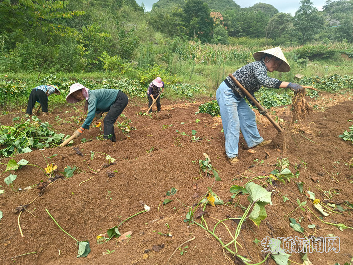 初秋时节,薯香四溢。8月28日,紫云自治县五峰街道中心村的红芯红薯种植基地里一派繁忙景象,种植户陈勇正组织10余名村民加紧挖收,全力抢占早市先机,确保新鲜红薯及时销往市场。