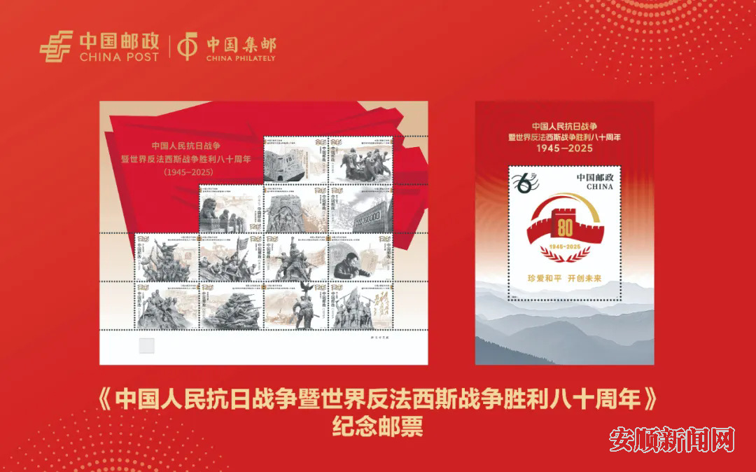 9月3日上午9时,《中国人民抗日战争暨世界反法西斯战争胜利八十周年》纪念邮票在安顺邮政正式发行。