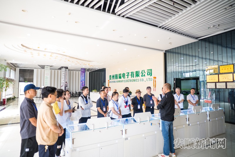 上午,采风团首站抵达顾府街与安顺古城。在讲解人员带领下,沿贯城河畔、儒林路、文庙等地,详细了解顾府街改造及古城保护与景城融合成果,深入体会“一流旅游城市”建设蓝图。随后,采风团走进西秀工业园区,参观贵州翰瑞电子有限公司的智能化生产线,了解企业精密制造技术及其对本地经济社会发展的贡献;在南山婆集团与西秀翠宏食品有限公司听取科技赋能与传统老字号升级的介绍,感受到二三产业融合的创新活力。
