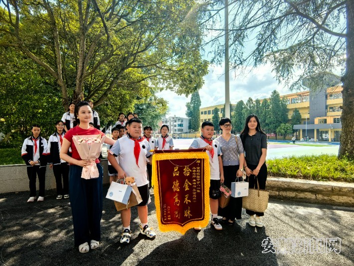 失主到学校为拾金不昧的吴海为和吴沧为送锦旗