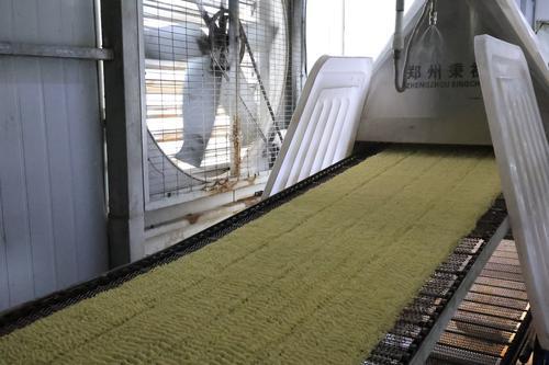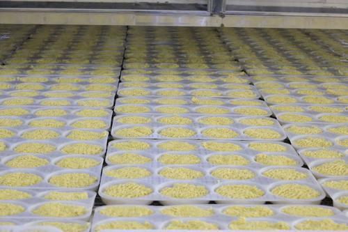 随着设备运转,金黄色的面条生产出来