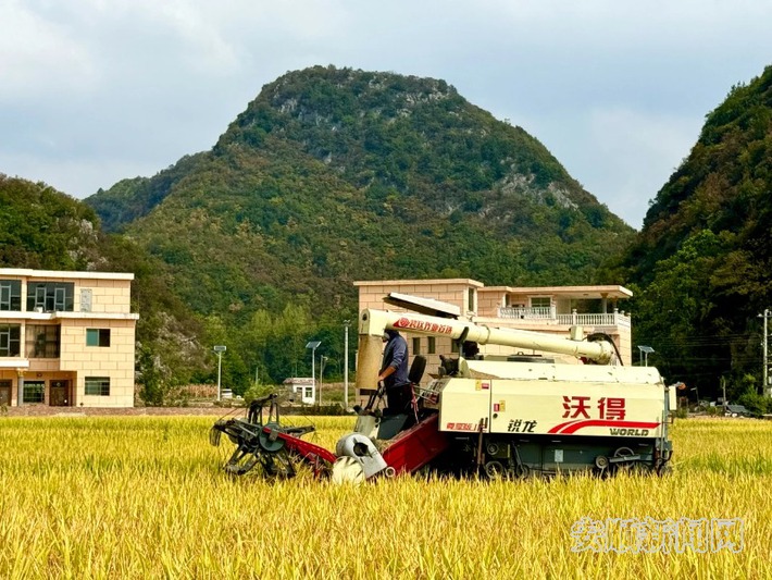 聚焦坝区和主要粮油作物,平坝区大力推广大中型农机具,致力于从耕、种、收各个环节全面实现机械化。针对梯田和巴掌田等不具备大中型机械作业的地方,则主要推广小型便携式农机具。目前,全区主要农作物耕种收综合机械化率达64%以上,其中水稻耕种收综合机械化率达74.74%、油菜耕种收综合机械化率达81.36%,大大提高农业生产效率。“如今的水稻耕、种、管、收各环节全程实现机械化。拖拉机、植保无人机、大型收割机等农机成了主角,农业更有吸引力。”平坝区杨文全农机农业服务农民专业合作社负责人介绍,现该合作社配齐各式大中型拖拉机、旋耕机、收割机以及植保无人机等先进农机设备,形成了一套完整的农业机械化服务体系。2023年,该合作社被贵州省农业农村厅授予“省级区域性农业社会化综合服务中心”称号,成为全区农业机械化发展的标杆。