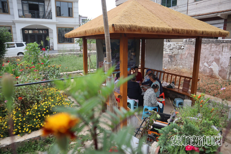 新修的凉亭成了村里的老人们娱乐休闲之地