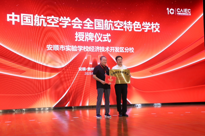 在颁奖仪式前,还同步举行了全国航空特色学校授牌仪式,安顺市实验学校经济技术开发区分校凭借在航空科普教育领域的扎实实践与突出成效,被正式授予“全国航空特色学校”称号。