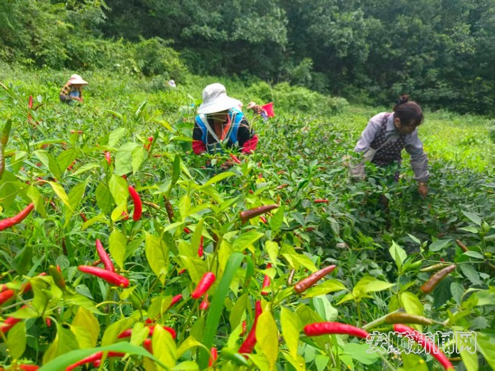 辣椒也是紫云的重要经济作物。在猫营镇沙坎村格其坝组,村民们采摘、分拣、装袋,火红的辣椒映红脸庞。