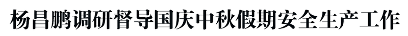 9月30日,市委书记杨昌鹏调研督导国庆中秋假期安全生产工作。市领导王成刚、王勋勇、吴贵森参加。