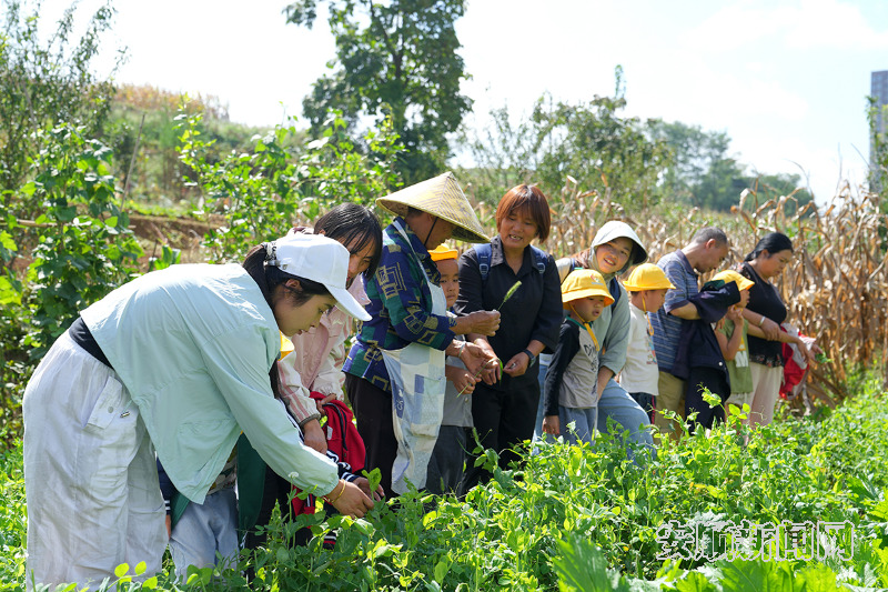 活动现场,学生们在教师、家长及志愿者的共同护送下,抵达位于鼓楼街道的听香花园餐厅农耕实践基地。在农耕指导员和教师的讲解下,学生们通过触摸、观察、闻味等方式,直观认识各种农作物,建立了从田间到餐桌的具体认知。在实践环节,学生们分组参与农作物采收。年龄较大的学生尝试使用传统工具收割水稻,年幼的学生则负责采摘豌豆尖、红薯藤等作物。辅助人员及时给予每个学生肯定和鼓励,学生们踊跃展示自己的劳动成果,现场洋溢着愉快的氛围。