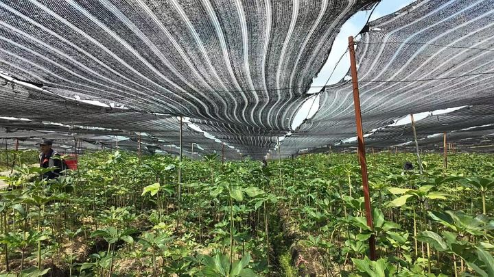 在大田村的重楼种植基地,村民们正有序开展除草、施肥等管护作业。基地目前处于常规管护阶段,每天用工量达50人,除了解决本地村民灵活务工,还辐射到周边乡镇。新化乡村民朱大会在基地稳定务工五六年,农闲时在这里上班几个月,可以拿到两三万元工资,同乡的李德芬以前在家种玉米,收入很有限,遇到天旱或者雨水多的年景,甚至要赔本,现在农闲时来基地务工,多了一份稳定的收入。