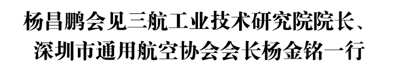 10月28日,市委书记杨昌鹏会见三航工业技术研究院院长、深圳市通用航空协会会长杨金铭一行。市领导王勋勇、周彬、杨平参加。