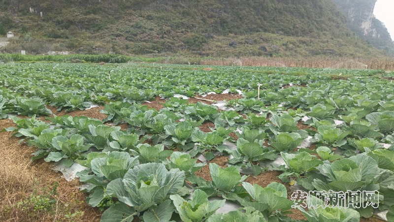 不远处的莲花白和豆苗长势正旺。韦洪彪介绍,再过两周,10余亩莲花白就能上市;而另一边20余亩豆苗下周即可采摘,收益也不错。