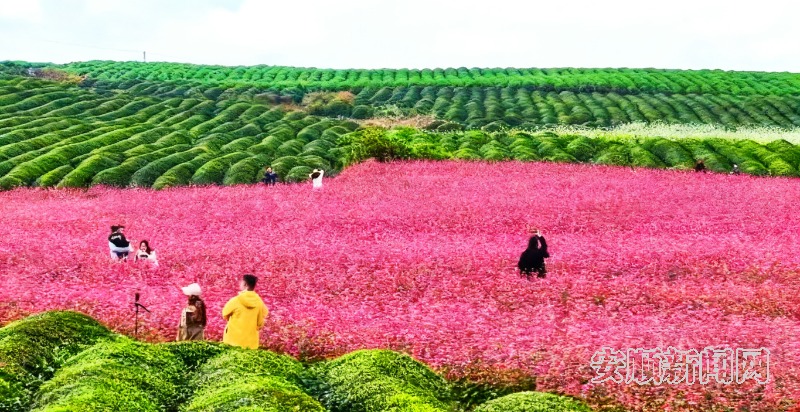 “没想到秋天的十二茅坡这么美,粉色的荞麦花和绿色的茶树形成鲜明对比,拍照特别好看。”一位来自贵阳的游客与朋友们在花海中频频按下快门。