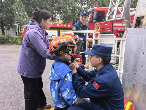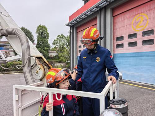 理论讲解结束后,孩子们分组进入各体验区域,在动手实践中学习消防知识。在灭火器实操区,消防员手把手教学“提、拔、握、压”操作步骤,让孩子们在模拟灭火中掌握初期火灾扑救方法,理解安全用火的重要性;云梯体验区前,孩子们依次登车体验,不仅直观感受了消防高空作业的挑战,更深刻认识到规范用火用电对生命安全的重要意义;器材参观环节,各类灭火救援装备整齐陈列,消防员逐一讲解装备功能与使用场景,尤其针对电气火灾扑救工具进行详细演示,让孩子们对“安全用电”有了更直观的认知;消防服穿戴体验则让孩子们真正“变身”小小消防员,厚重的消防防护服让他们真切体会到消防员肩负的责任与艰辛,进一步理解了“生命至上”背后的守护意义。
