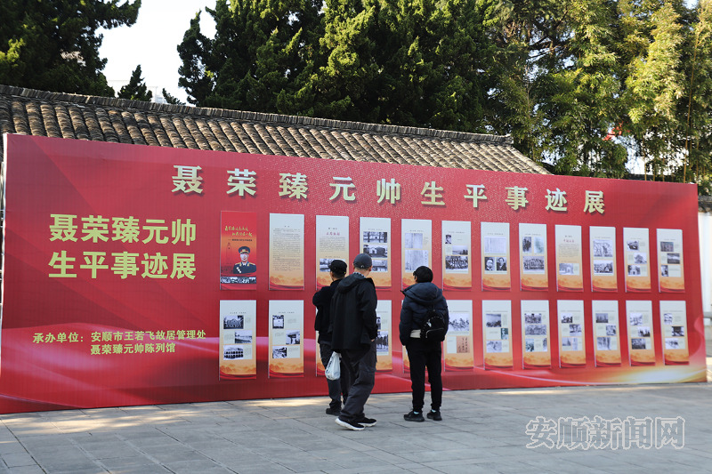1月13日,安顺市王若飞故居陈列馆广场暖意融融,“聂荣臻元帅生平事迹展”在此展出,一张张珍贵照片、一个个文献资料吸引众多市民游客观展。
