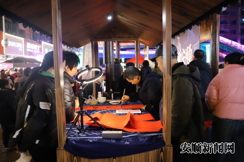 巡游过后,《顾成说安顺》在书场内正式开讲。国家级安顺地戏市级项目传承人、安顺戏剧家协会理事黎炳伟通过通俗生动的语言,将明朝“调北征南”的历史、顾成将军的故事以及安顺建城的历史脉络娓娓道来。活动现场还特别邀请了书法家为市民游客书写对联,送上美好祝福。