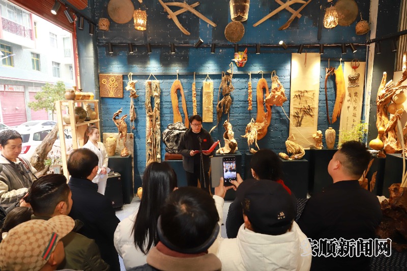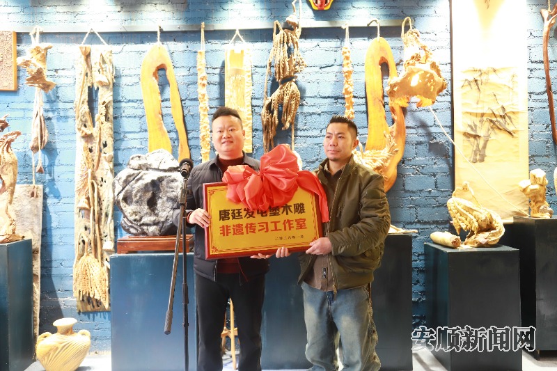 1月21日,市文化馆在白果新村举行授牌仪式,正式授予唐廷发屯堡木雕非遗传习工作室牌匾。