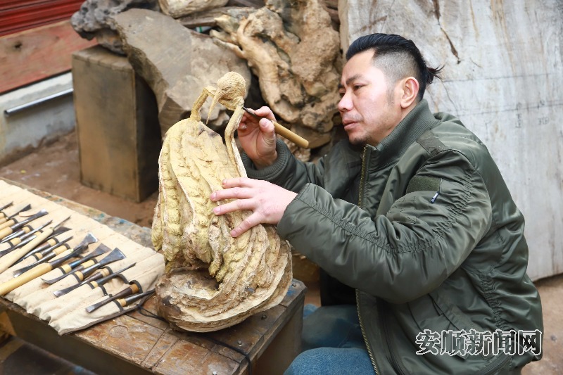 据悉,屯堡木雕是安顺600年屯堡文化孕育的非遗瑰宝,它以刀为笔、以木为纸,将屯堡人的迁徙记忆、民俗信仰与生活智慧镌刻于木质之上。无论是古民居雕花窗棂、地戏面具,还是生活器物摆件,皆凝结着世代相传的精湛技艺与文化基因,是安顺独有的文化标识与精神财富。